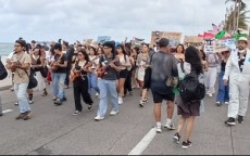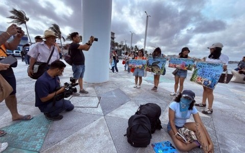 Jóvenes y pobladores marcharon en Veracruz y Pajapan por derrame en el Golfo; exigen transparencia, remediación ambiental e indemnización.