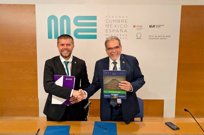 22/04/ 2026.- Con un paso firme en la internacionalización, el rector de la Universidad Veracruzana, Martín Aguilar Sánchez, firmó cinco convenios de colaboración con tres instituciones de España, alianzas estratégicas que permitirán el intercambio académico de estudiantes y docentes, la investigación conjunta y el desarrollo de proyectos, fortaleciendo la calidad educativa y ampliando los horizontes profesionales de la comunidad universitaria.