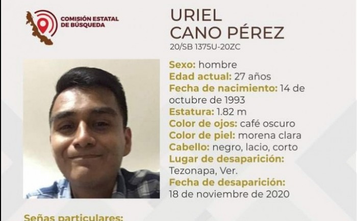 Tezonapa, Ver.- (AVC) Familiares y amigos protestaron sobre la carretera federal Omealca-Tezonapa para exigir la inmediata aparición con vida de Uriel Cano Pérez, de 27 años de edad. Los habitantes originarios de la localidad Presidio, de Tezonapa, amagan con cerrar totalmente dicha carretera en su tramo carretero Motzorongo-Presidio, si las autoridades estatales no atienden el llamado de la familia. El joven quien se encuentra reportado como desaparecido desde el pasado miércoles 18 del presente, cuenta con 27 años de edad, mide 1.82 metros, ojos café oscuros, tez morena clara, con cabello corto, lacio y negro, así como lunares en el rostro, cicatriz en la ceja izquierda, además de que usa brackets. Sus familiares quienes se apostaron a un costado de la carretera, portaron cartulinas que contenían su fotografía, además de textos que decían: "Uriel Cano Pérez tu familia y amigos te queremos de regreso ya en casa digo te fuiste vivo regresas. Señor gobernador exigimos respuesta"; "Uriel Cano Pérez. Arturo Sánchez García exigimos el regreso de Uriel!, tú sabes que es un poco un deportista esto no puede quedar así, llamar tade arruinar la vida la gente honesta y trabajadora"; "Uriel Cano, lo queremos de regreso es un joven deportista, trabajador, honrado siempre al servicio de los demás". Es de señalar que dos jóvenes hombres más también se encuentran reportados como desaparecidos en la zona de Córdoba. Irvin Moreno Vela de 28 años de edad y con domicilio en Potrero Nuevo Atoyac, quien mide 1.73 metros de estatura, ojos café oscuro, tez blanca, cabello negro, lacio y corto, con nariz recta y boca mediana con labios regulares, se encuentra como desaparecido desde el pasado miércoles 18 de noviembre. También se encuentra desaparecido desde el pasado 05 de noviembre el joven: José Alberto Delfín Bautista de 26 años de edad, quien mide 1.65 metros de estatura, cuenta con ojos cafés oscuros, tez morena, cabello negro, corto y lacio, además de cicatrices en antebrazo, en ombligo, en ceja izquierda y un lunar dentro del ojo, mismo que tiene domicilio en el Municipio Córdoba.