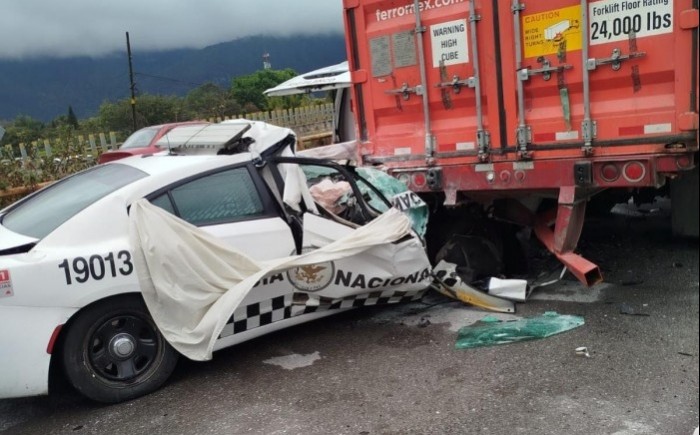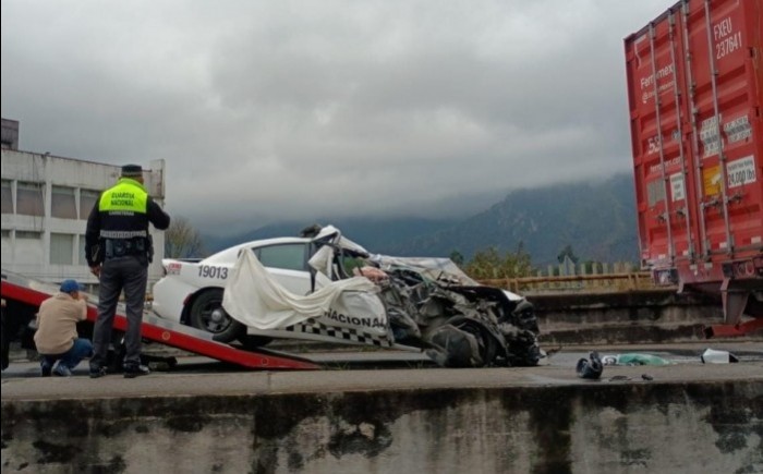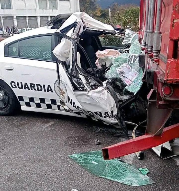 Río Blanco, Ver.- (AVC) Un elemento de la Guardia Nacional resultó lesionado tras chocar la patrulla que conducía contra un tráiler estacionado en la lateral del puente Vicente Guerrero, en Río Blanco, la mañana de este lunes. El percance ocurrió bajo lluvia ligera cuando la radiopatrulla circulaba por la zona y se impactó por alcance contra un tráiler estacionado en la lateral del puente superior de Vicente Guerrero, lo que provocó daños totales en la unidad oficial. La patrulla era un Dodge Charger blanco con insignias de la Guardia Nacional División Carreteras, número económico 19013. El tráiler, un Freightliner amarillo de la empresa Astur Logistic, remolcaba un contenedor de Ferrosur del Grupo México. El oficial presentó un golpe en el brazo derecho y fue auxiliado por paramédicos de Protección Civil Municipal, quienes lo trasladaron a un hospital particular de Orizaba para valoración médica. Elementos de la Secretaría de Seguridad Pública estatal y corporaciones federales aseguraron la zona y cerraron la circulación en la lateral para permitir las labores de auxilio. Posteriormente, grúas retiraron las unidades; la patrulla fue enviada al destacamento correspondiente y el tráiler a un corralón, quedando a disposición de la autoridad para el deslinde de responsabilidades. Las autoridades mantuvieron el área bajo resguardo hasta concluir los trabajos y continuarán con las investigaciones para determinar las causas del accidente y las responsabilidades correspondientes.