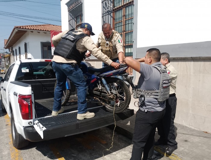 Durante la intervención fueron aseguradas motocicletas y diversos objetos. Las tres personas detenidas, así como lo incautado, quedaron a disposición de la Fiscalía Regional para la integración de la carpeta de investigación y la definición de su situación legal.