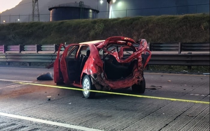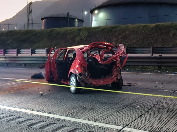 De acuerdo con los primeros reportes, la conductora de un Volkswagen Gol hatchback perdió el control del vehículo y se impactó contra las barreras metálicas de contención, lo que provocó la volcadura sobre el carril de alta velocidad.
