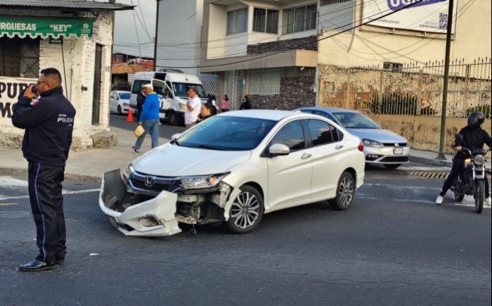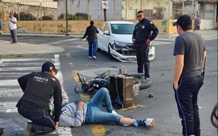 Orizaba, Ver.- (AVC) Un motociclista resultó lesionado la mañana de este miércoles tras un choque con un automóvil en la avenida Cri Cri, en el Barrio Aulicaba de Orizaba. El percance ocurrió alrededor de las 8:00 horas y obligó al cierre temporal de la vialidad. El accidente se registró en el cruce de Norte 5A y Circunvalación Norte, frente a la UGM Pluviosilla. De acuerdo con los primeros reportes, un automóvil Honda City color blanco, con placas YKA268A del estado, era conducido por una mujer que presuntamente invadió la preferencia de paso. Tras la maniobra, una motocicleta Italika FT125 negra con caja de reparto se impactó en ángulo contra el vehículo. El conductor de la motocicleta, un hombre de entre 30 y 35 años, sufrió una lesión en la pierna derecha. Paramédicos de la Cruz Roja Delegación Orizaba le brindaron atención prehospitalaria y lo trasladaron al Hospital Regional de Río Blanco, actualmente bajo el esquema IMSS Bienestar. Elementos de la Policía Municipal y de Tránsito resguardaron el área mientras se realizaban las maniobras de auxilio y el retiro de las unidades involucradas. Posteriormente, el perito en turno ordenó que el automóvil y la motocicleta fueran remolcados al corralón ubicado en la colonia Lourdes, donde se determinarán responsabilidades y el pago de los daños y gastos médicos. Las autoridades de tránsito realizarán el peritaje correspondiente para establecer la causa del choque y definir las responsabilidades legales entre los conductores involucrados.