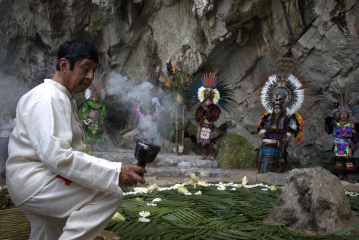 La ceremonia ocurre dentro de un entorno natural marcado por la presencia de la gruta, un sistema geológico con más de 100 millones de años de antigüedad que se convierte en escenario de danzas prehispánicas y rituales simbólicos.