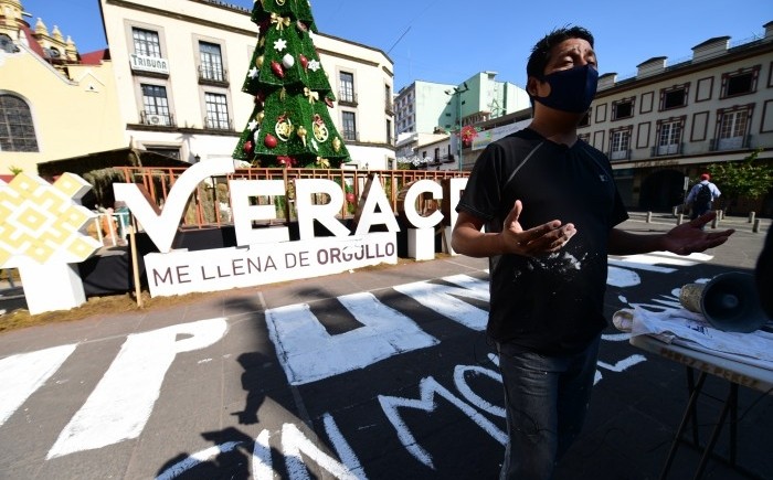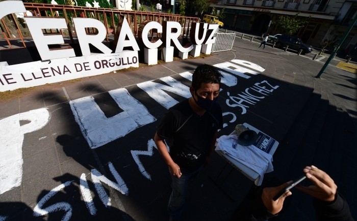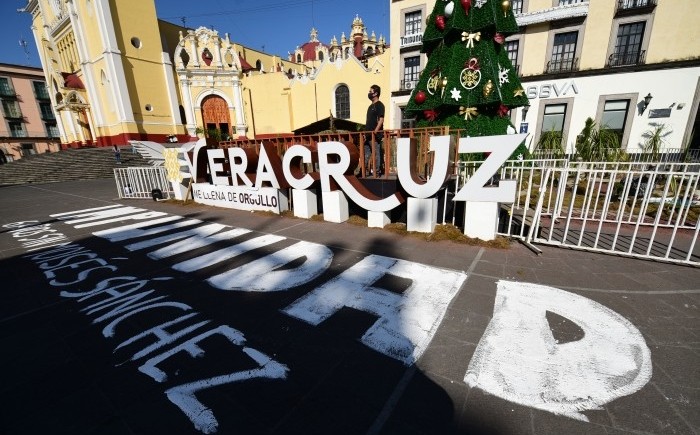 Jorge Sánchez, hijo del periodista asesinado el 2 de enero de 2015, acudió este sábado a plaza Lerdo y pintó junto a las letras turística de “Veracruz” la palabra impunidad, ya que dijo el nombre del estado está ligado a la impunidad, ya que sin importar el color de los Gobiernos en turno y que cada uno tenga un fiscal “a modo” los crímenes de periodistas siguen impunes.