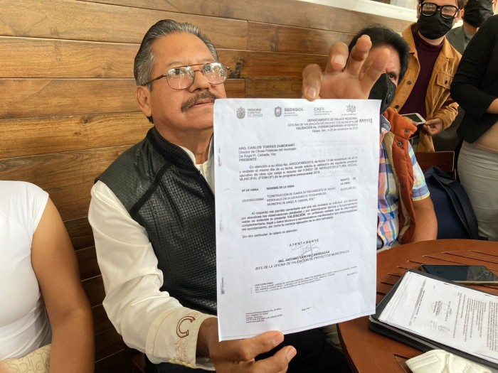 Xalapa, Ver.- (AVC/Verónica Huerta) El expresidente municipal de Ángel R. Cabada, Arturo Herviz Reyes solicitó a la Fiscalía Anticorrupción que investigue al presunto responsable de ingresar un documento “apócrifo” ante la Comisión de Aguas del Estado de Veracruz (CAEV), que válida la construcción de planta de tratamiento de aguas residuales en la comunidad de Tecolapa, con un monto de 4 millones 595 mil, del ejercicio presupuestal del año 2019. De acuerdo con la información de la Cuenta Pública del Órgano de Fiscalización Superior (Orfis) en el segundo año de administración de Herviz Reyes en el 2019, se construyó la planta de tratamiento de aguas residuales, la cual no obtuvo la autorización de las autoridades de CAEV. Este lunes, Herviz Reyes acudió a un conocido café de la ciudad para dar una conferencia de prensa, en conjunto con el extesorero, Felipe López Amaya; la exregidora segunda, Mariana Parra Zapot; y el excontralor interno Freddy Pardiña. “Estamos aquí todos los demandados por supuesto documento apócrifo. Por ningún motivo Arturo Herviz, tres veces presidente municipal, diputado local, senador de la República, iba yo a permitir que se falseara un documento, soy abogado y hemos sido críticos de la corrupción. Venimos a dar la cara y no tenemos nada que ver con ese documento apócrifo”. El exalcalde solicitó a la Fiscalía General del Estado (FGE) que investigue al exdirector de Obras Públicas de su administración municipal, Carlos Torres Zamora, encargado de realizar los trámites ante la CAEV de la construcción de la planta de tratamiento de aguas residuales. “Estamos demandados, y el encargado directo de la situación de obras, el director de Obras Carlos Torres Zamorano, él hizo la gestión no está citado en la Fiscalía, no lo citan cuando él es el responsable directo del trámite de la construcción de planta de tratamientos de aguas residuales de Tecolapa. Tengo documentos de que él gestionó, dirigido al arquitecto Jorge Félix Ladrón de Guevara firma el director de obras y el documento que otorga la validación”, dijo.