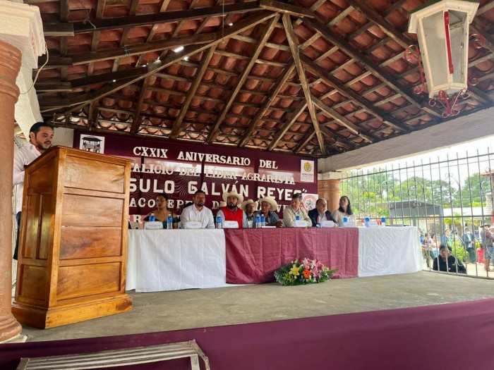 Tlacotepec de Mejía, Ver.- En Tlacotepec de Mejía, la tierra que lo vio nacer, este viernes 21 de octubre se conmemoraron los 129 años del nacimiento del lider agrarista Úrsulo Galván Reyes, mediante una ceremonia cívica encabezada por el presidente municipal Carlos Gracia Moreno. Durante la ceremonia tuvieron oportunidad de participar familiares del lider agrarista quienes destacaron su legado histórico. En su discurso, Ferrer Galván Acosta, bisnieto de Ursulo Galván, sacudió con criticas fuertes el maltrato que vive el campo en México: "Vivimos una tragedia lamentable, una contradicción vergozosa, mientras el campesino produce los alimentos que llegan a las mesas, mientras el campesino llena las mesas de los mexicanos, las mesas mas vacías son las de los propios campesinos" Hizo un llamado a la unidad campesina y a no olvidar que nuestros abuelos y bisabuelos murieron defendiendo nuestro derecho a la propiedad de la tierra. Ferrer Galván, quien ademas es presidente de la Fundación Úrsulo Galván, miembro de la dirigencia nacional de Movimiento Ciudadano y quien fuera candidato de ese partido a diputado local en 2021, aprovechó la tribuna para criticar al presidente Lopez Obrador por sus decisiones de no cobrar impuestos a las importaciones de alimentos provenientes de otros paises, acto que, Galván acusó de ser "el tiro de gracia al ya de por sí moribundo campo mexicano". En el acto cívico tambien participó Jose Julio Espinoza en representación de la CNC quien destacó tambien las luchas agrarias y se sumó al llamado de Ferrer Galván, de buscar la unidad de los campesinos. En el acto estuvieron presentes Horacio Galván Madrid, nieto de Úrsulo Galván, Renée Galván de la Cruz y Ferrer Arturo González Lima, también bisnietos del Prócer. Ademas del presidente municipal y su cabildo, hizo presencia el alcalde de Zentla, Rafael Lopez, el regidor de Paso de Ovejas, Javier Ramírez y el dirigente estatal de Movimiento Ciudadano Sergio Gil Rullan.