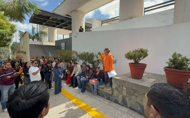 El personal inconforme denunció deficiencias en el suministro de materiales básicos, como impresoras, tóners, agua potable y papelería, además de elevadores fuera de servicio y retrasos en pagos y prestaciones.