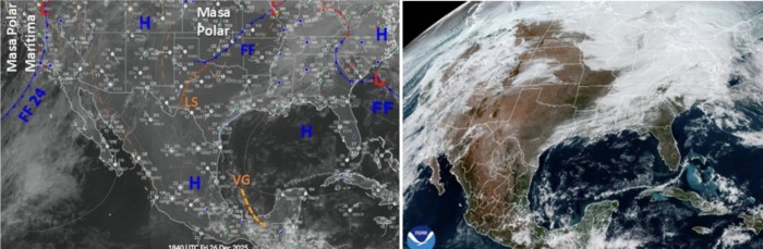 De acuerdo con el pronóstico del Sistema de Alerta Temprana de Veracruz (SIAT-Ver), los modelos meteorológicos indican el ingreso de un frente frío —probablemente el número 25— entre el lunes 29 y martes 30 de diciembre, impulsado por una masa de aire ártico.