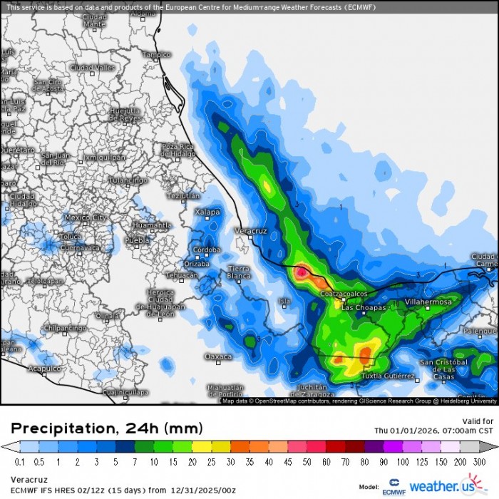 La probabilidad de lluvias y tormentas disminuye en la mayor parte del estado. Los acumulados más relevantes se concentran en la región de Los Tuxtlas y en las cuencas de los ríos Coatzacoalcos y Tonalá. Se prevé la presencia de nieblas y neblinas de manera eventual.