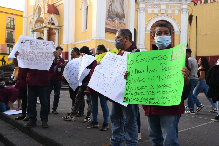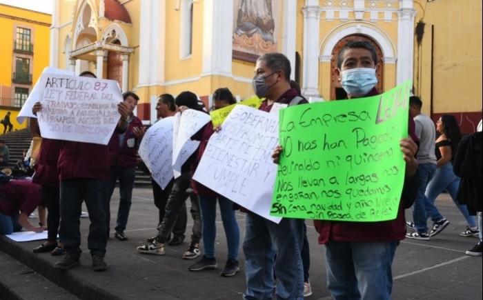 Xalapa, Ver.- (AVC) Trabajadores de la empresa Limpieza Especializada Industrial y Hospitalaria (LEIH) bloquearon este jueves calles de Xalapa para exigir el pago de quincenas y aguinaldo adeudados, situación que afecta a personal asignado a hospitales y centros de salud del estado.