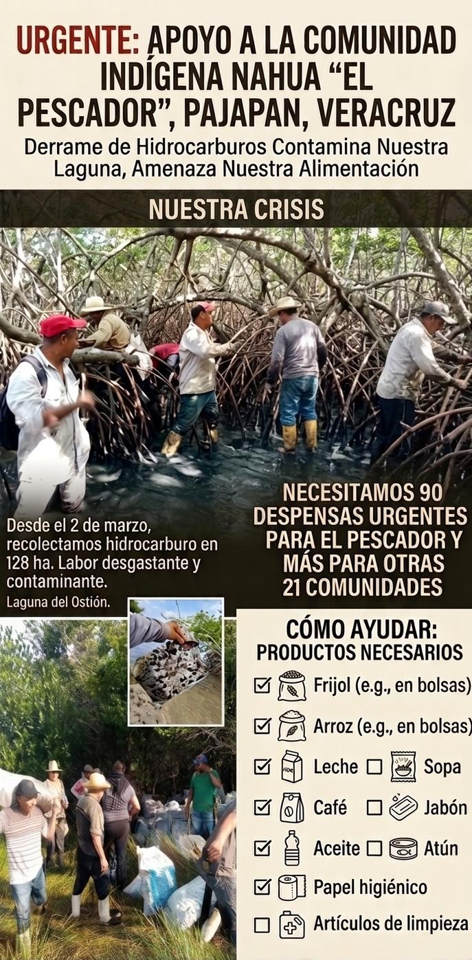 En la comunidad indígena nahua El Pescador, en Pajapan, habitantes reportaron afectaciones en la Laguna del Ostión, lo que pone en riesgo su sustento.