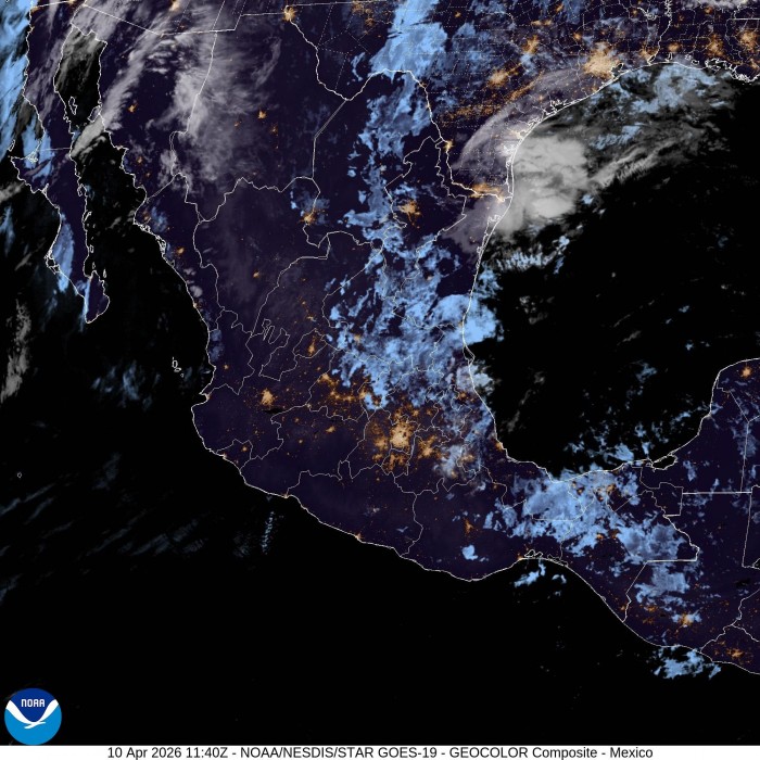 En cuanto a las condiciones actuales, imágenes satelitales muestran núcleos de nubosidad en el noroeste del Golfo de México, frente a las costas de Tamaulipas, así como en la costa norte, región norte y sur de Veracruz y sobre Tabasco. En la zona centro predominan nubes dispersas.