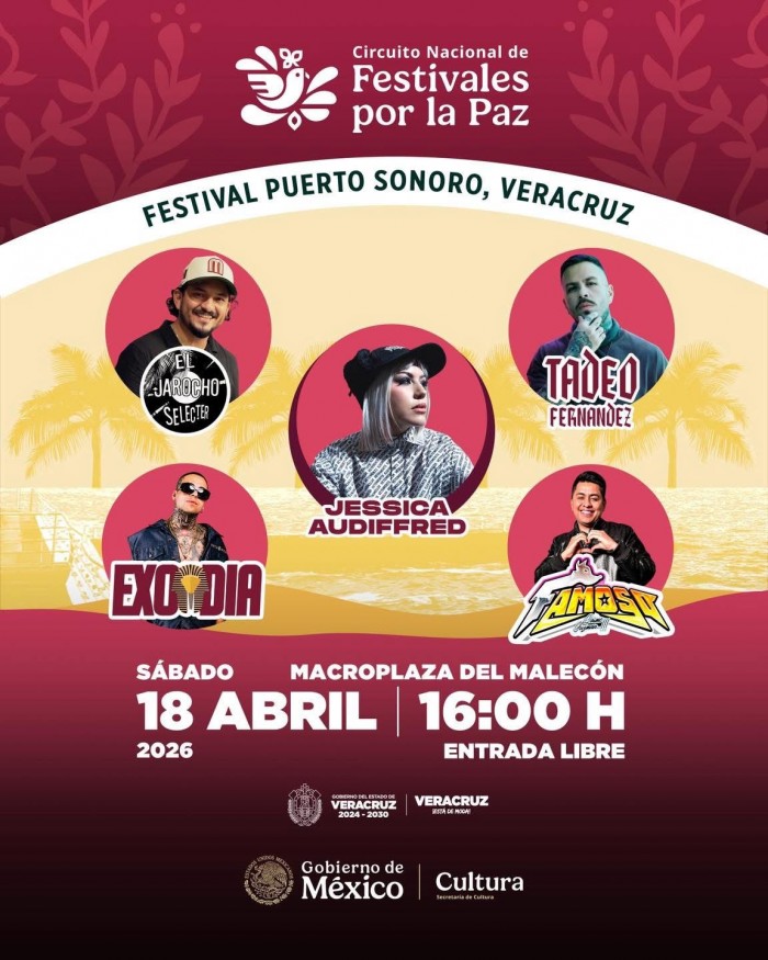 El programa artístico iniciará a las 16:00 horas con Jarocho Selector, seguido de Exodia; a las 20:00 horas se presentará Tadeo Fernández y a las 21:00 horas Jessica Audiffred, previo al acto principal.