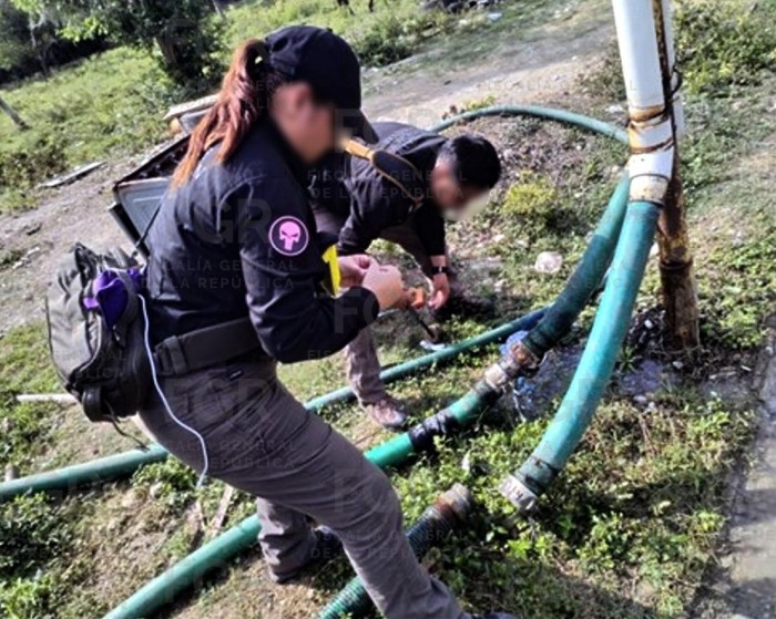 Álamo Temapache, Ver.—  (AVC) La Fiscalía General de la República (FGR) aseguró un tanque con capacidad de 30 mil litros, así como equipo para extracción, durante un cateo en un predio ubicado en la carretera federal 127, como parte de una investigación por delitos previstos en la Ley General de Bienes Nacionales.