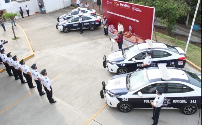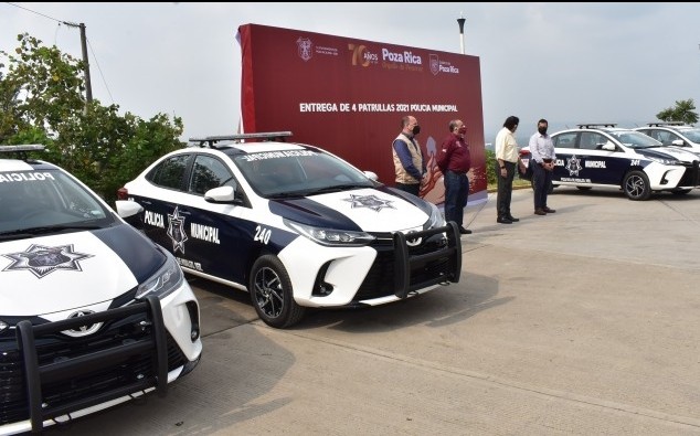 Poza Rica, Ver.- El alcalde Francisco Javier Velázquez Vallejo, llevó a cabo la entrega de cuatro patrullas a la Policía Municipal Preventiva de ésta ciudad, con el fin de que el personal operativo de esta corporación cuente con mejores condiciones para llevar a cabo las labores cotidianas de seguridad y responder a las demandas de la ciudadanía en éste sentido.