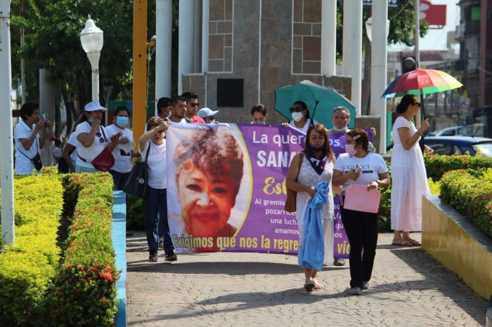 Con un lona que llevaba inscrito el mensaje de “La queremos sana y salva: Estela Pérez. Al gremio animalista y la sociedad pozarricense nos hace falta una luchadora social que amamos y respetamos. Exigimos que nos la regresen con vida”, las manifestantes gritaron