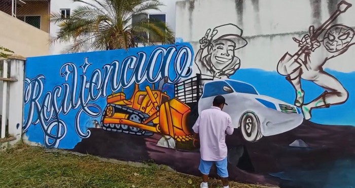 Álvaro Rocha Acosta, Artista urbano, explicó que plasmaron imágenes de las vivencias que algunos damnificados tuvieron y ese día se difundieron y alertaron sobre la situación en esta zona.