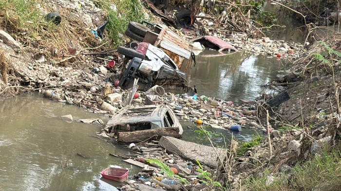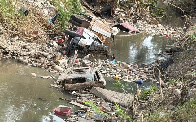 Poza Rica, Ver.- (AVC/Misael Olmedo) En el arroyo “El Hueleque” que atraviesa las colonias 27 de septiembre y Benito Juárez más de cuatro unidades vehiculares que fueron arrastradas por la inundación del 10 de octubre siguen sin ser retirados, generando preocupación entre los vecinos.