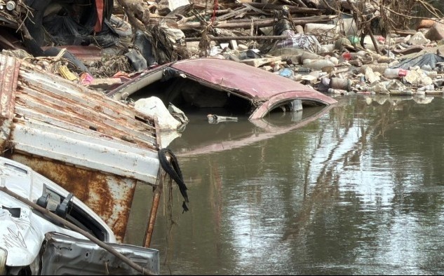 Camionetas arrastradas por la inundación en Poza Rica van a cumplir un mes hundidas en un arroyo