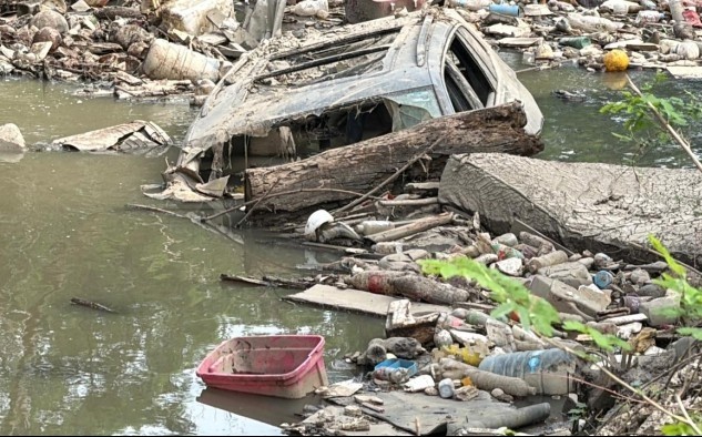 Pero por el contrario en lugar de limpiarlo a un costado autoridades locales dispusieron de un tiradero de desechos de la inundación al aire libre.