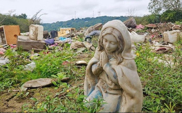 2026-01-20.- A tres meses del desbordamiento del río Cazones, vecinos de la colonia Ignacio de la Llave buscan reciclaje entre escombros para subsistir.