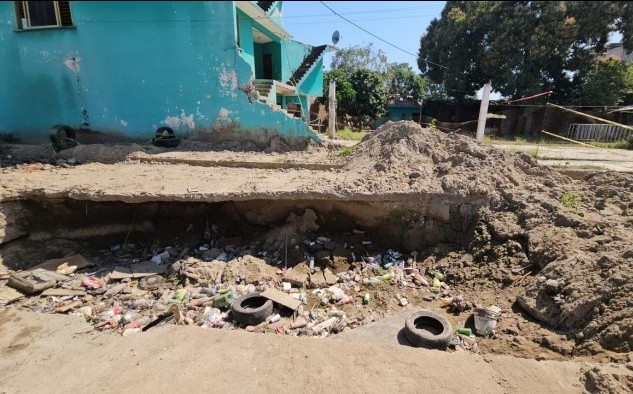 Poza Rica, Ver.- (AVC) Habitantes de la colonia Ignacio de la Llave, en Poza Rica, reportaron que el socavón en la calle Rodolfo Curti permanece sin reparación a más de cuatro meses de las inundaciones. El daño mantiene cerrada la vialidad desde el 10 de octubre y genera riesgo para viviendas cercanas al río Cazones.