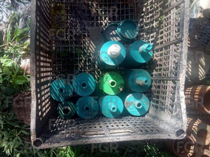 De acuerdo con la información oficial, en el inmueble fueron localizadas seis salchichas de hidrogel, 10 estopines, 38 artefactos explosivos, un recipiente con pólvora, 19 cilindros, un kilo de sustancia química para la elaboración de explosivos, cuatro pastillas de hipoclorito, además de pipetas, un embudo de separación, una báscula digital de plástico, un matraz y una mascarilla sin filtros.