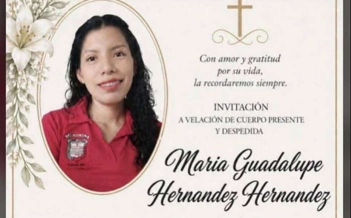 “Expresamos un profundo pesar por el sensible fallecimiento de nuestra compañera, Lic. en Educación Básica María Guadalupe Hernández Hernández. Con profundo dolor informamos que ha sido localizada, y nos unimos al duelo que embarga a su familia, amistades, colegas y seres queridos, deseando encuentren fortaleza y consuelo ante esta irreparable pérdida.