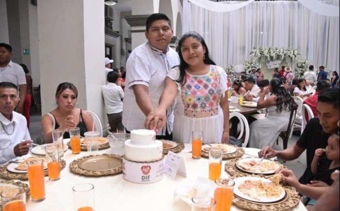 La presidenta del DIF Municipal, Andrea Vargas Fernández, destacó la coordinación institucional para realizar el evento e invitó a las parejas a mantener comunicación y respeto en su vida en común.