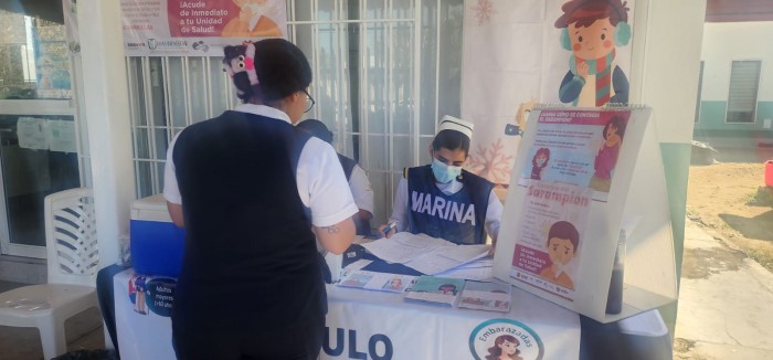 Coatzacoalcos, Ver.- (AVC) La Secretaría de Marina, a través de la Armada de México, informa que ayer, personal de la Tercera Zona Naval, en coordinación con el Centro de Salud de Lomas de Barrillas, en un esfuerzo por salvaguardar la salud de las familias veracruzanas, dieron inicio a la Campaña de vacunación contra el Sarampión. Esta alianza estratégica tiene como objetivo principal, agilizar la inmunización de grupos de riesgo y población vulnerable del municipio, reforzando el escudo epidemiológico de la población en la región. La suma de esfuerzos entre el personal de sanidad naval y las autoridades locales, se realizó para prevenir posibles brotes. Cabe destacar que, esta campaña de vacunación se llevará a cabo del 11 de febrero al cinco de marzo del presente, en las instalaciones del Centro de Salud de Lomas de Barrillas de este municipio. Con estas acciones, la Secretaría de Marina, a través de la Armada de México reafirma su compromiso de colaborar con instituciones del sector salud, con el fin de brindar atención médica oportuna y de calidad, para salvaguardar la vida de todos los mexicanos.
