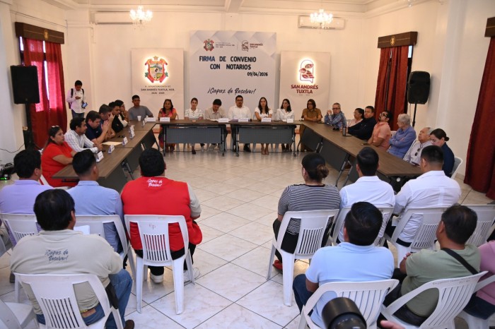 San Andrés Tuxtla, Ver.- (AVC) El Ayuntamiento de San Andrés Tuxtla firmó un convenio de colaboración con la Decimonovena demarcación del Colegio de Notarios con el objetivo de fortalecer la seguridad jurídica y facilitar el acceso a trámites notariales a bajo costo para la población.