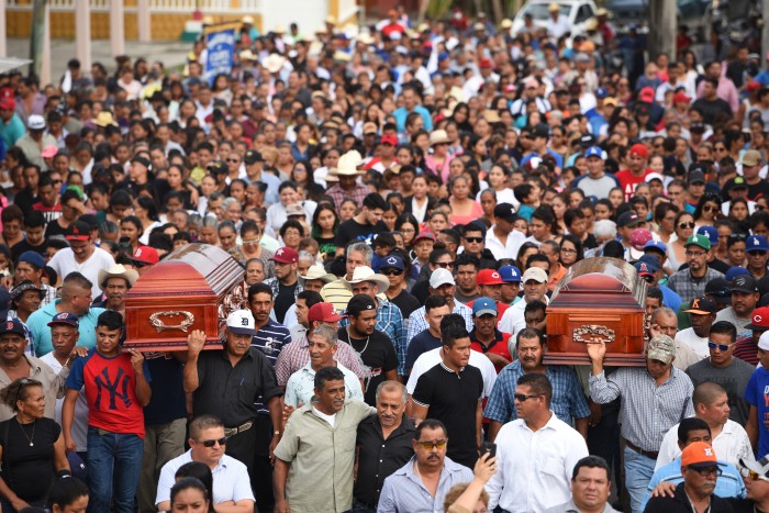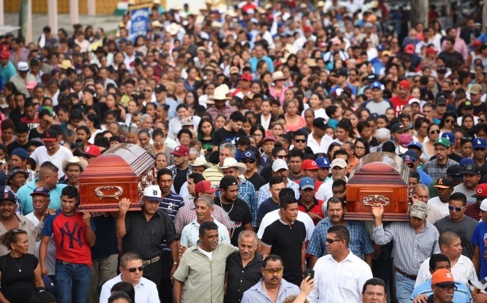 El cortejo fúnebre, con los ataúdes de Narciso y su hijo Gustavo al frente, avanzó a paso lento hacia Paso de la Boca, lugar ubicado a aproximadamente a un kilómetro del domicilio.