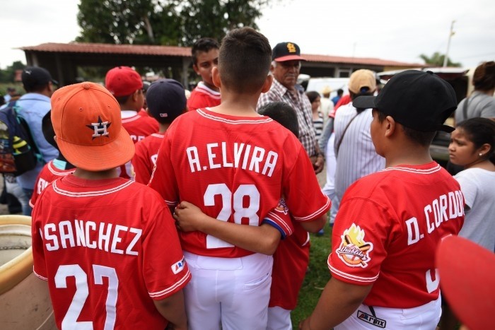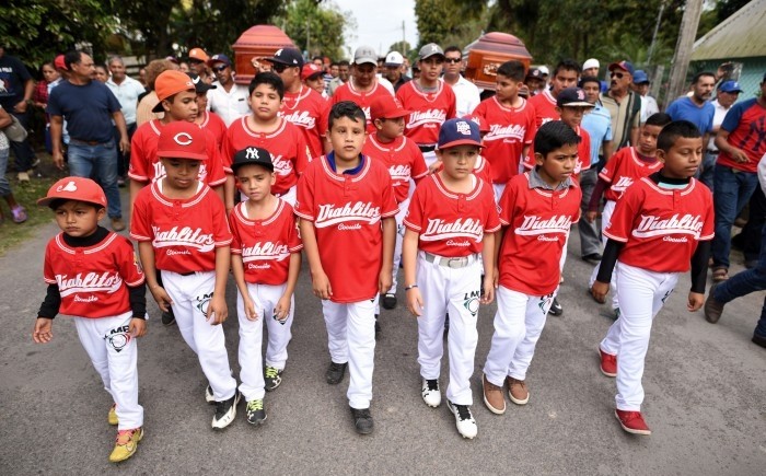 Incluso, una novena de jugadores de ligas pequeñas se presentó vistiendo sus uniformes en rojo y blanco.