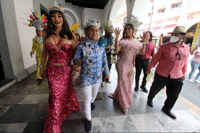 Veracruz, Ver.- (AVC/José Juan García) La Comunidad Jarochos presentó oficialmente a sus reyes LGBTTTI que participarán en el Carnaval de Veracruz 2022, el cual se celebrará del 1 al 5 de julio próximo. Alrededor del mediodía del miércoles, los integrantes de la Comunidad Jarochos se reunieron en el zócalo de la ciudad, de donde partieron casi una hora después hacia las oficinas del comité organizador del Carnaval de Veracruz, que se ubican en el palacio municipal, con la finalidad de presentar al rey gay, a la reina les y a la reina trans. Al respecto, el presidente de la Comunidad Jarochos, Enrique Izacur Maldonado, detalló que Eroy Fonte fue designado como rey gay, Cecilia Mora como reina les y Mitchell Lagunes como reina trans. Izacur Maldonado explicó que los reyes de la Comunidad Jarochos designó directamente a sus reyes para evitar conflictos en sus integrantes. “Fue por designación, hicimos como un contrato para que fueran ellos, ya que en años anteriores lo hacíamos como el Comité del Carnaval con una inscripción de varios, pero había mucho conflicto y decidimos mejor elegir a uno en cada categoría”, agregó. El presidente de la Comunidad Jarochos resaltó que Eroy Fonte, Cecilia Mora y Mitchell Lagunes se coronarán próximamente en un teatro de esta ciudad, donde lucirán sus trajes. Enrique Izacur Maldonado aseguró que la corte LGBTTTI participará en actividades a las cuales les convoque el comité organizador el previo al inicio del Carnaval de Veracruz 2022. Además, Izacur Maldonado destacó que ya trabajan en la confección del carro alegórico que transportará al rey gay, a la reina les y a la reina trans durante los desfiles carnestolendos. “Nos da mucho gusto que varia ciudadanía en general ha tenido interés en el carnaval, la fiesta más importante del estado; después de dos años de contingencia, de encierro, pues es una alegría grande porque dos años sin participar como tal sí ha sido difícil”, remató.