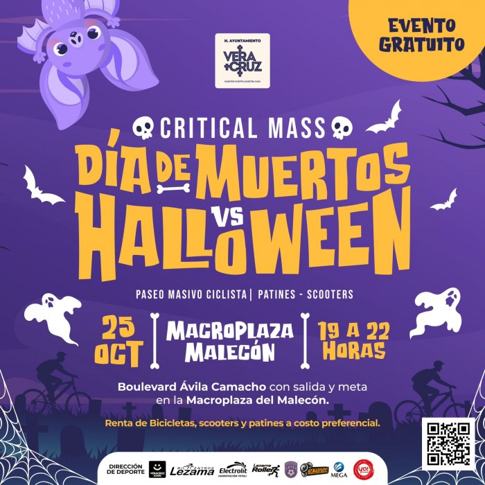 Veracruz, Ver.- (AVC) El próximo viernes 25 de octubre, a las 18:00 horas, se llevará a cabo el tradicional Paseo Masivo Ciclista Critical Mass “Día de Muertos vs Halloween”, en la Macroplaza del Malecón de Veracruz, en conmemoración del Día de Muertos. José Antonio Salvatori Arjona, director de Deportes del Ayuntamiento de Veracruz, destacó que este evento, que se realiza anualmente, ha tenido una excelente respuesta por parte de personas de todas las edades, quienes asisten caracterizados para celebrar esta importante tradición. Informó que las personas interesadas en participar deben acudir a la Macroplaza a las 18:00 horas con su bicicleta, scooter o patín del diablo. La participación es gratuita, y aquellos que no cuenten con equipo pueden rentarlo en el lugar con los patrocinadores Bicicentro Lezama y Kino. Manifestó que no es necesario registrarse previamente; solo es cuestión de llegar a la hora indicada. Se regalarán playeras a los primeros 500 asistentes. Salvatori dijo que el recorrido contará con dos rutas sobre el bulevar Ávila Camacho con salida y meta en la Macroplaza: una de 3 kilómetros, pensada para los niños, que llegará hasta la calle Amado Nervo, y otra de 5 kilómetros, que se extenderá hasta la avenida Xicoténcatl, subrayando que las vialidades estarán cerradas para garantizar la seguridad de todos los asistentes. Reiteró que el evento está abierto a personas de todas las edades, desde niños pequeños acompañados de sus padres hasta adultos mayores. Además, las mascotas también son bienvenidas. Dio a conocer que al finalizar el paseo, los asistentes podrán disfrutar de música a cargo de un DJ, juegos inflables para los niños y premios para los tres mejores disfraces. El evento concluirá a las 22:00 horas, con el bulevar cerrado para que los participantes sigan disfrutando del paseo en bicicleta. Por último informó que las autoridades de Tránsito, Protección Civil y Policía estarán presentes para asegurar el buen desarrollo del evento, garantizando un ambiente seguro y familiar para todos los asistentes. Se espera una participación de alrededor de 500 personas.
