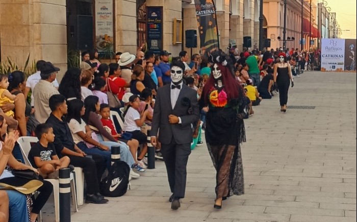 Veracruz, Ver.- (AVC/José Juan García) Cuarenta alumnas de la academia de belleza "Reflejos" participaron en la pasarela de Catrinas 2025, la cual se realizó en la avenida Independencia de esta ciudad de Veracruz por la tarde de este martes.