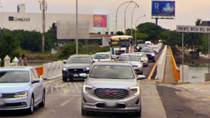 Boca del Río, Ver.- (AVC) Operadores que prestan el servicio de transporte de pasajeros a través de aplicaciones digitales bloquearon ambos sentidos del puente sobre el río Jamapa, en la cabecera municipal de Boca del Río, para exigir la entrega de una unidad particular que fue asegurada por elementos de la Dirección General de Transporte Público.