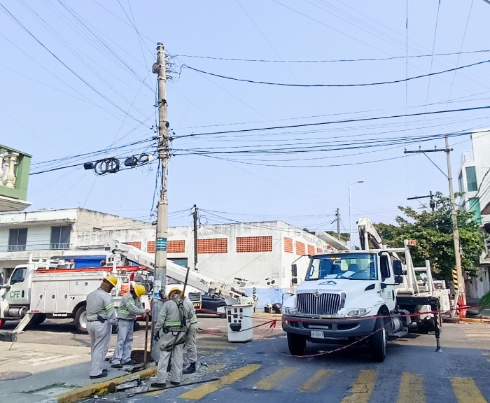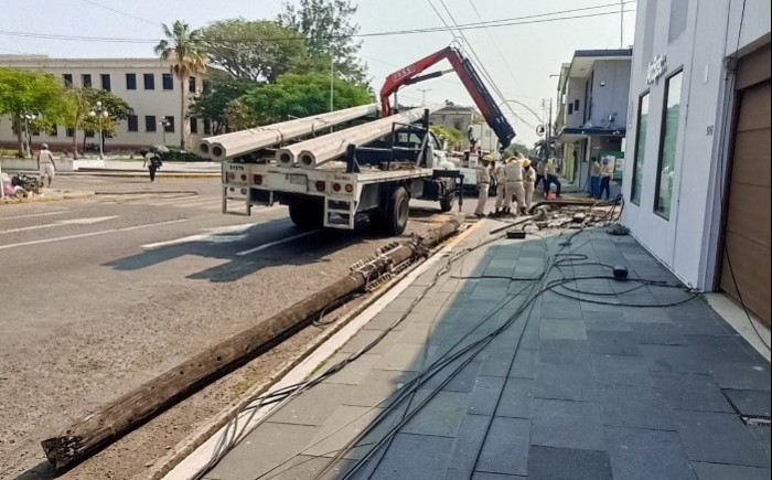 Veracruz, Ver.- (AVC/José Juan García) Una unidad de carga dañó tres postes de la Comisión Federal de Electricidad en el Centro Histórico de la ciudad de Veracruz alrededor de la medianoche del martes 18 de noviembre. La unidad de carga dañó postes en las esquinas de Hidalgo y Emparan y Juárez e Hidalgo. La zona se acordó debido a que varios cables quedaron tirados sobre las calles. Cuadrillas de trabajadores de la CFE iniciaron el cambio de los postes desde la mañana de este miércoles, lo cual provocó el cierre de la circulación sobre Hidalgo, Juárez y Emparan. Raquel, vecina de la calle Emparan, contó que se trató de un tráiler con doble remolque el que se impactó contra los postes y que el conductor presuntamente huía de elementos de Tránsito y se estrelló contra los postes en su huida. “Yo creo que lo venía persiguiendo los de Tránsito porque lo habían tenido detenido y al momento de llegar a aquí dio la vuelta y le pegó al poste y se desbarató todo y se dio a la fuga, lo demás no lo vi, pero se puede ver todo lo que tiró, fue como a las once y media de la noche”, agregó. La vecina entrevistada dijo que un sector de la zona se quedó sin el servicio de electricidad, pero reconoció que se cortaría el suministro cuando se cambiaran los postes. Raquel consideró que ese tipo de unidades no deberían transitar por el Centro Histórico de la ciudad, sin embargo, refirió que se ve circulando en la zona las pipas de gas, camiones que abastecen de insumos a un cervecería que se ubica sobre la calle Emparan, entre otras. “Son camiones muy altos y seguro rompían cables, eso le compete a Tránsito vigilar”, añadió. Cabe mencionar que los trabajos para el cambio de los postes se realizaron durante varias horas.
