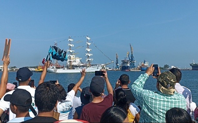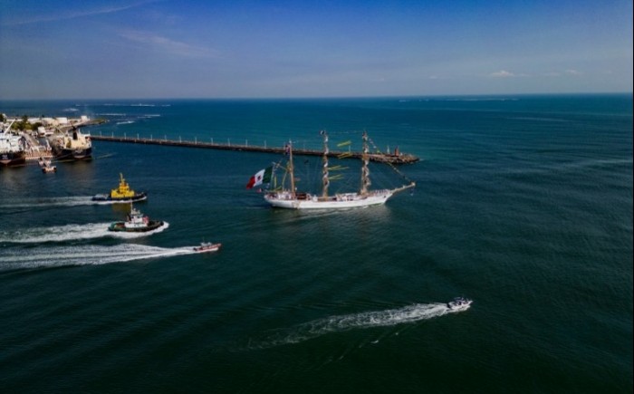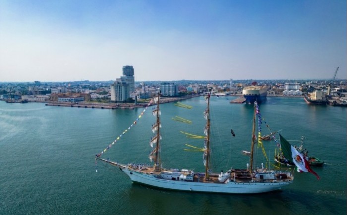 Zarpa el buque escuela Cuauhtémoc tras una estancia de siete días en el puerto de Veracruz