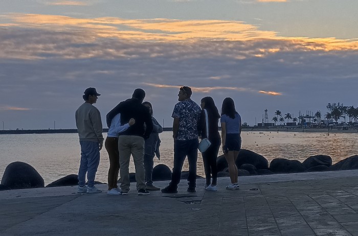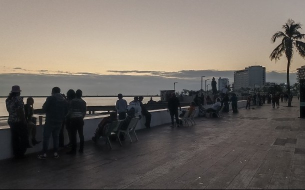 Veracruz, Ver.- (AVC/José Juan García) Veracruzanos y turistas se dieron cita a lo largo del bulevar Manuel Ávila Camacho de Veracruz y Boca del Río durante las primeras horas del 1 de enero de 2026 con la finalidad de presenciar el primer amanecer del año. Familias y grupos de jóvenes armaron una fiesta para darle la bienvenida al 2026. Principalmente fueron jóvenes quienes llegaron al bulevar con un six, un doce o botellas de licor para convivir mientras esperaban los primeros rayos del sol de este 1 de enero. El ambiente festivo en la ciudad de Veracruz inició con la cuenta regresiva para darle la bienvenida al 2026 afuera de la plaza Acuario, donde además hubo presentaciones artísticas. De ahí, continuó con el desfile que se denominó "Una fiesta para amanecer", el cual comenzó a las 01:30 horas. El amanecer del 1 de enero estuvo programado para las 06:58 horas. Sin embargo, una nubosidad en el horizonte impidió ver los primeros rayos del sol, lo cual lamentaron los asistentes, pero aprovecharon para tomarse las primeras fotos del año. Mario Rosas Rosas, residente de la Ciudad de México, recibió el año nuevo en Veracruz y acudió al bulevar Manuel Ávila Camacho para presenciar el amanecer, sin saber que se trata de una tradición de los veracruzanos. Rosas Rosas compartió que sus deseos para este 2026 es contar con salud y trabajo y que tiene como propósito terminar una casita que está construyendo. Rebeca Escobar y Juan Carlos García Flores, del Estado de México, consideraron que lo importante es contar con salud, ya que con ella lo demás es posible en la vida. La señora Escobar confió en que mejore la economía del país porque manifestó que "se encuentra por los suelos" y que hay menos ventas y empleo. Incluso, la mexiquense descartó que haya un beneficio por incrementar el salario mínimo si también suben productos a partir de este 1 de enero. Tras el amanecer, autoridades municipales de Veracruz y Boca del Río iniciaron el barrido de los asistentes a lo largo del bulevar Ávila Camacho para evitar que se registraran incidencias por el consumo de alcohol. Cabe resaltar que cuadrillas de trabajadores de Limpia Pública se encargaron de recoger latas de cerveza, botellas de licor, cartón, plásticos, entre otros residuos, con la finalidad de que el bulevar turístico quedara limpio para el disfrute de los veracruzanos, corredores y los turistas que asistirían a la playa horas más tarde.