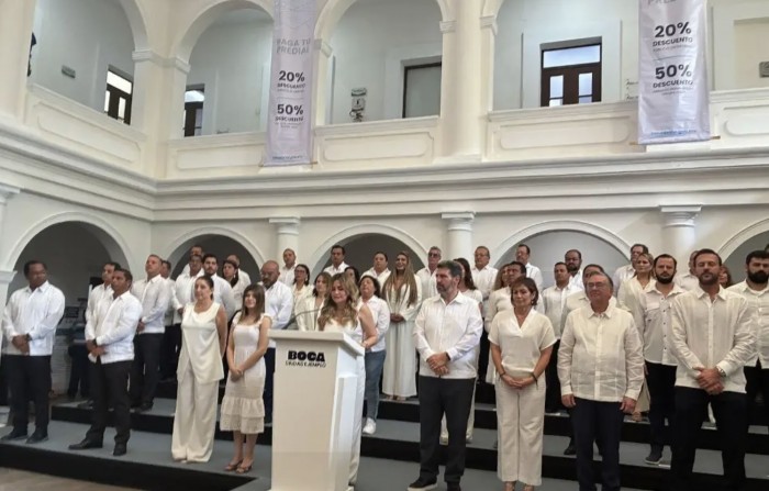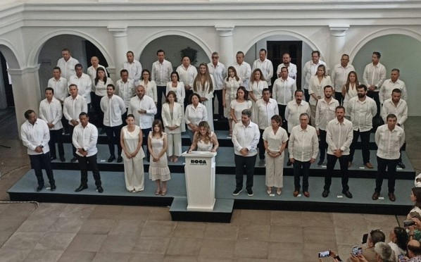 Gamboa Torales encabezó la presentación de los integrantes del gabinete de la administración de Boca del Río en el patio central del palacio municipal por la mañana de este viernes 2 de enero del 2026. La presidenta municipal detalló que se contará con seis coordinaciones estratégicas que articularán el trabajo de las direcciones municipales. La coordinación administrativa estará a cargo de Rafael García Peña Carvajal, quien supervisará los resultados de Tesorería, Unidad Municipal de Transparencia, Oficina Municipal de Relaciones Exteriores, Oficina del Registro Civil, Dirección de Información, Estadística, Innovación, Sistemas y Tecnologías. Al frente de la coordinación de Seguridad estará Osvaldo Arturo Arzola Pérez, quien será responsable de supervisar el trabajo de Seguridad Pública Municipal, Tránsito y Vialidad, Protección Civil, Gobernación y Policía Turística. En la coordinación de Obras estará al frente Jorge Lohmann Díaz y le corresponderá supervisar las direcciones de Obras Públicas y Desarrollo Urbano, Participación Ciudadana, Medio Ambiente y Protección Animal, Proyectos Estratégicos, Agua y Plan de Desarrollo Municipal. La coordinación de Servicios Públicos estará a cargo de Juan Carlos Torres Sánchez, a quien le corresponderá supervisar el trabajo y los resultados de las direcciones de Limpia Pública, Alumbrado Público, Mantenimiento Urbano, Parques y Jardines, Servicios Generales y Control Vehicular. Santiago Caramés Chaparro será el coordinador de Desarrollo Económico y Turismo y supervisará las direcciones de Turismo, Desarrollo Económico, Comercio y Administración Costera integral y Sustentable. En tanto que al frente del DIF municipal estará María paula Hákim Gamboa, quien cuenta con experiencia de trabajo al lado de la alcaldesa en sus diferentes cargos y actividades a favor de los ciudadanos. La alcaldesa aseguró que se analizó el perfil de los coordinadores y los directores municipales antes de su nombramiento. No obstante, Maryjose Gamboa Torales advirtió que se evaluará el trabajo y los resultados de los coordinadores y directores municipales cada tres meses, ya que en la administración pública no hay espacio para la improvisación y Boca del Río demanda orden, seguridad y un buen gobierno. “Cada área de este gobierno tendrá metas claras y medibles, vamos a evaluar la productividad y el desempeño, los resultados de manera constante porque en Boca del Río los cargos no son permanentes, pero la exigencia, sí, quien dé resultados continuará, quien no esté a la altura de lo que esta ciudad demanda tendrá que dar un paso al costado”, subrayó. Por último, Gamboa Torales consideró que con este equipo se consolidará a Boca del Río como la ciudad que marca el rumbo, como la ciudad que pone ejemplo y como la ciudad que demuestra que cuando se gobierna con seriedad y compromiso los resultados se notan en la vida diaria de las personas.