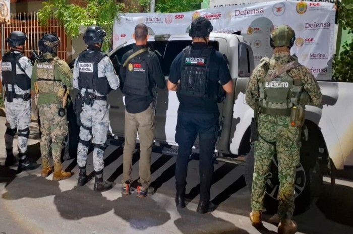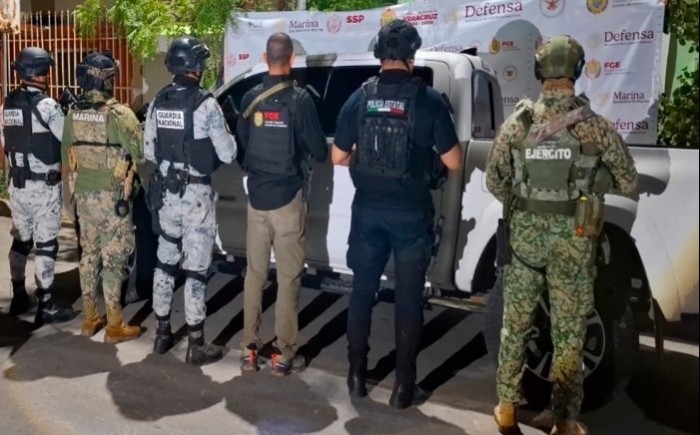 En una acción paralela, fuerzas federales y estatales realizaron otro cateo en un inmueble ubicado en el municipio de Tierra Blanca. En este sitio se aseguraron cuatro armas largas, 13 cargadores, 21 cartuchos, cuatro equipos de radiocomunicación, nueve chalecos tácticos, diverso equipo táctico y un vehículo.