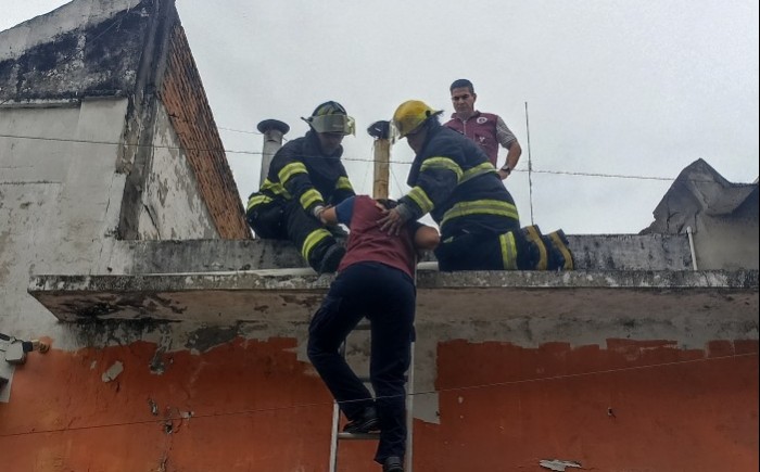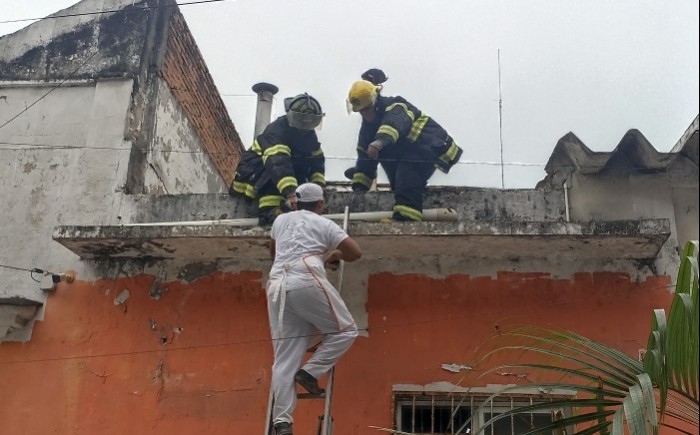 Bomberos se dirigieron a la parte trasera de la panadería La Especial y subieron a la azotea para inspeccionar los tanques estacionarios.