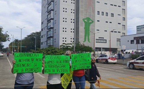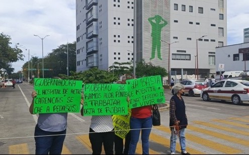 Veracruz, Ver.- (AVC/José Juan García) Mamás y familiares de niños con cáncer de la Torre Pediátrica bloquearon la avenida 20 de Noviembre de la ciudad de Veracruz para demandar a las autoridades de la Secretaría de Salud que se dote de insumos y que se reanuden las cirugías del área de Oncología en ese nosocomio. Los manifestantes se plantaron a la altura de la calle Mina, donde extendieron un mecate para impedir la circulación vial hacia el centro de la ciudad. Elementos de la Dirección de Tránsito y Vialidad Municipal desviaron la circulación sobre la calle Alacio Pérez. Las mamás de niños con cáncer portaron cartulinas que contenían frases como las siguientes: "Roberto Ramos Alor, ponte a trabajar, deja de robar", "Ya basta de mentir, tengo derecho a vivir", "Gobernadora, el hospital de altas carencias, se cae a peda'sos'", entre otras. En entrevista, Yunuet Jazmín Segovia García, una de las madres de pacientes oncológicos, dijo que decidieron manifestarse debido a la falta de respuesta a sus demandas por parte de la dirección general de la Torre y de la Secretaría de Salud. Segovia García reiteró que hay cirugías que están pendientes desde diciembre debido a la falta de insumos. "Estamos bloqueando porque la verdad no hemos tenido soluciones a las problemáticas que hay en el hospital. El día de ayer asistimos otra vez a dirección por una mamá que necesita que operen a su hijo y lamentablemente no se hizo la cirugía porque la placa de platino se la dieron a alguien más; yo entiendo que hay urgencias, pero esta urgencia está desde la quincena de diciembre y no se habían movido", subrayó. Además, Yunuet Segovia García lamentó que niños con cáncer, que tienen programadas cirugías, viajen de balde a la Torre Pediátrica de esta ciudad, ya que los regresan porque las intervenciones quirúrgicas están suspendidas. Segovia García insistió en que se requiere dotar de insumos al nosocomio infantil. "Los niños vienen a consulta y los regresan porque no los pueden meter a cirugía, hace falta el equipo de anestesia y los insumos. Incluso nos dijeron que no pueden operar a niños que pesan menos de 30 kilos; no es solo un caso, es general, niños con hernias, con catéteres, de oncología, de nefrología, no hay catéteres, no hay sondas, y las mamás de neonatos están comprando las cosas", puntualizó. Finalmente, la mujer refirió que se anunció una mesa de diálogo con personal de la Secretaría de Salud, sin embargo, advirtió que se continuarán manifestando hasta que se restablezca la atención de calidad y se dote de insumos, anestesia, sondas y equipo médico a la Torre Pediátrica.