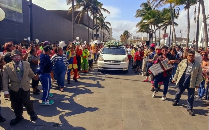 Despiden con aplausos y lágrimas a Tun Tun Piernas Locas, payaso que daba show en la Macroplaza del Malecón