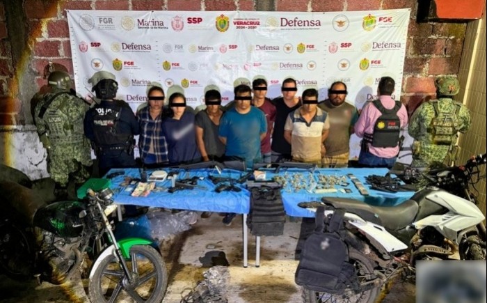 Veracruz, Ver.- (AVC/José Juan García) Fuerzas federales y estatales detuvieron a ocho integrantes de una banda delincuencial en San Andrés Tuxtla, a quienes les aseguraron droga, réplicas de armas, armas de aire, tres motocicletas con reporte de robo, entre otros objetos.