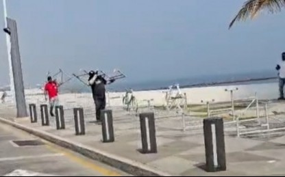 La instalación de las estructuras metálicas inició a la altura de la playa Martí, del lado mar, hacia el hotel Mar y Tierra.