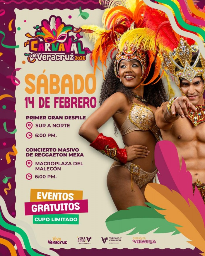El programa completo del Carnaval de Veracruz 2026 puede consultarse en los canales oficiales del Ayuntamiento.