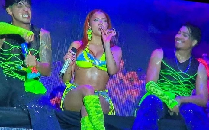 Veracruz, Ver.- (AVC) La influencer y ex reina del Carnaval de Veracruz, Yeri Mua, generó polémica durante su presentación en el concierto masivo del sábado pasado en la Macroplaza del Malecón de esta ciudad, ya que aparentemente fumó marihuana. Incluso, desde el escenario, ella solicitó a los elementos de la Secretaría de Marina que se permitiera fumar marihuana, según un video que se hizo viral en las redes sociales. La petición de la influencer generó aplausos entre los asistentes al concierto masivo, pero también críticas. Cabe mencionar que Yeri Mua formó parte del elenco artístico del Reggaetón Mexa que tuvo lugar el 14 de febrero en la Macroplaza del Malecón.
